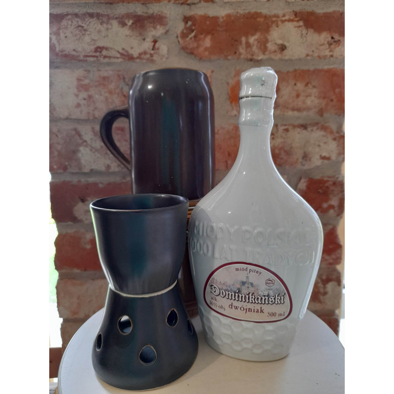 Zestaw miodów pitnych niesyconych Półtorak Piasecki 16%,Dwójniak Warmiński 16%, Trójniak Mazurski 13%.Zachowuje